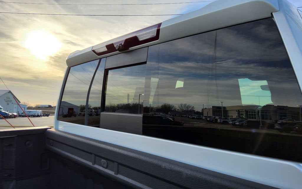 - Allows driver to see inside the cargo bed on the infotainment display to help with 5th wheel or gooseneck hitching and to check cargo